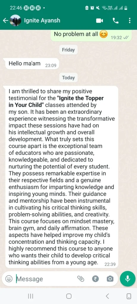 - Hear positive reviews from teachers and school authorities about your child’s remarkable transformation